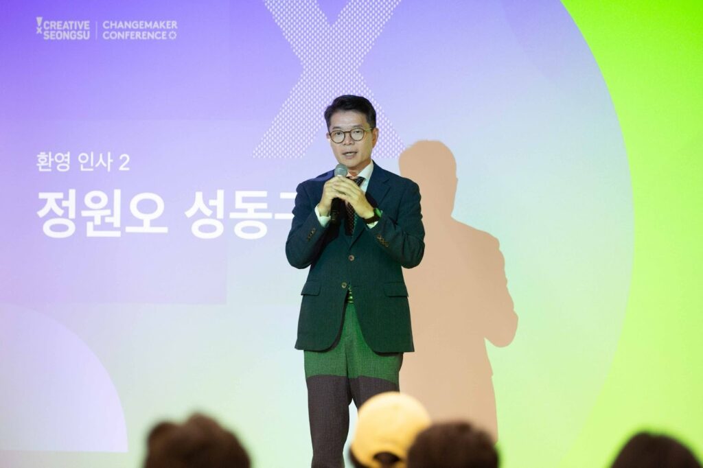 첫 번째 기조 강연 후에는 정원오 성동구청장이 두 번째 환영 인사를 전했습니다. 그는 “100세 시대를 넘어 120세 시대까지 거론되는 만큼, 행정의 영역에서도 달라진 삶의 패러다임에 맞춘 새로운 제도에 대해 고민하고 있다”면서 “체인지메이커 컨퍼런스가 이 고민에 대한 많은 인사이트를 주었으면 한다”라는 바람을 전했습니다.