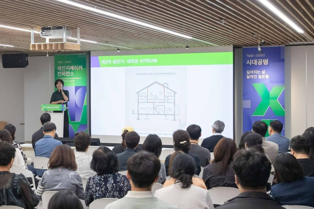 “수명이 늘면서 ‘제 2의 성년기’라고 부르는 30%가 더 생겼는데요. 이 공간을 건축물의 넓은 개방 공간인 ‘아트리움(Atrium)’에 비유하고 싶습니다. 집 면적의 30%를 차지하는 거대한 아트리움이 생긴다면, 그 공간은 단지 비어있는 곳이 아니라 집의 다른 모든 방에 영향을 끼치고, 그 방을 사용하는 사람들의 삶의 방식까지 바꾸게 될 겁니다.”